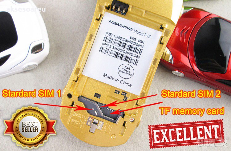 Мобилен телефон GSM с две сим карти Dual Sim отключен нов за ученици студенти с форма на автомобил ф