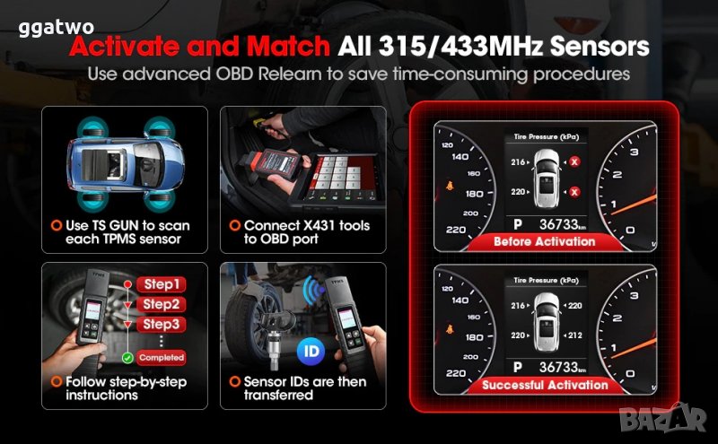 Покритието е на над 98% от използваните оригинални TPMS сензори за вграждане.