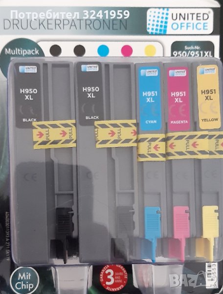 Комплект от 5 бр. касети за цветен принтер HP 950/951 XL (2 бр. черни и по 1 бр. - синьозелен, пурпурен и жълт цвят).