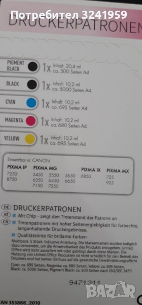 Повече информация за съвместимостта на касетите с модела на съответния принтер може да намерите на снимката на гърба на съответната опаковката. Касетите са внос от Германия.
