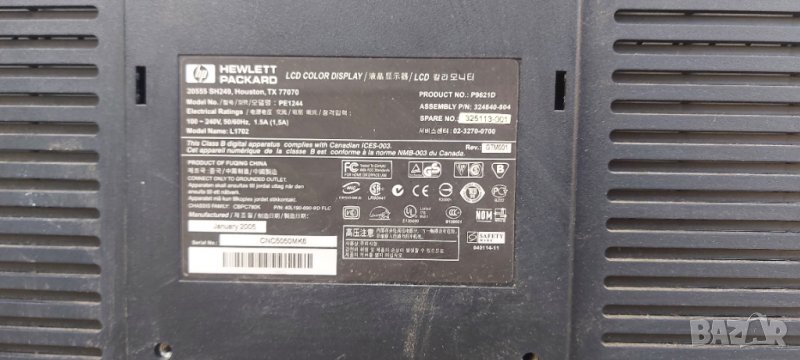 Монитор HP 1702 LCD Monitor 17" инча P9621D → Обява 38310323