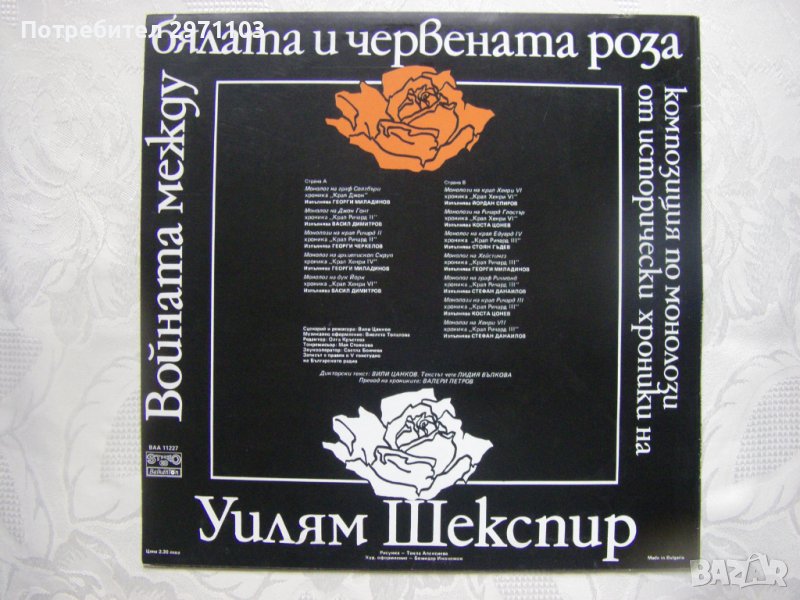 Грамофонна плоча - ВАА 11227 - Войната между бялата и червената роза. Композиция по монолози от исторически хроники на Уилям Шекспир