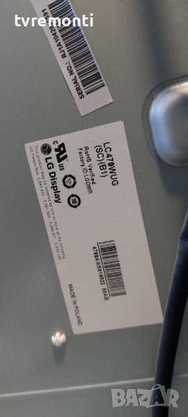 Демонтиран от телевизор Sharp МОДЕЛ 40BF2E със счупен дисплей LC470WUG SCB1 тесвана от нашия техник