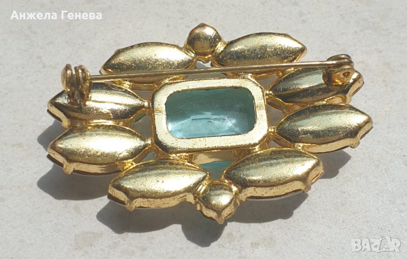 правоъгълен кристал в бледо аква синьо и множество по-малки,