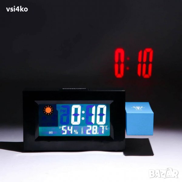 - Аларма / Календар часовник 4 икони: слънце, слънце и облаци, облаци, облаци и дъжд температура и влажност AM/PM