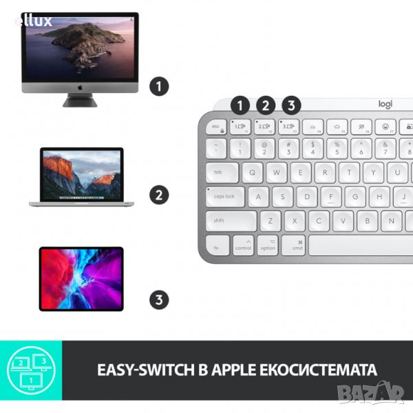 MX Keys Mini за Mac идеално намира място във вашите Mac и iPad работни процеси – с подредба на клавишите за Mac, за да не изпускате ритъма. Ще получите повече функционалност, превъзходно проектирани клавиши и солидно качество на изработка в дизайн, който перфектно ще се впише във вашата Apple екосистема. MX Keys Mini за Mac е оптимизирана за macOS, iPadOS и iOS.