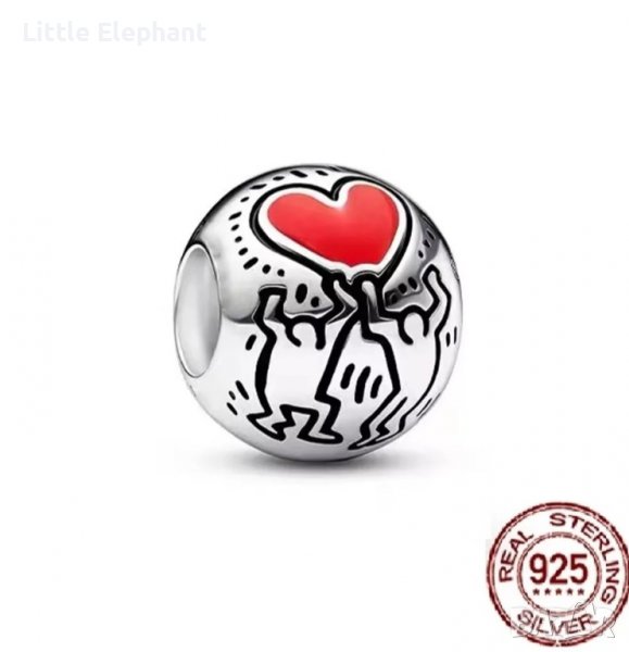 Сребърен елемент Пандора,Keith Haring,Love and Figures/нов → Обява 38323895