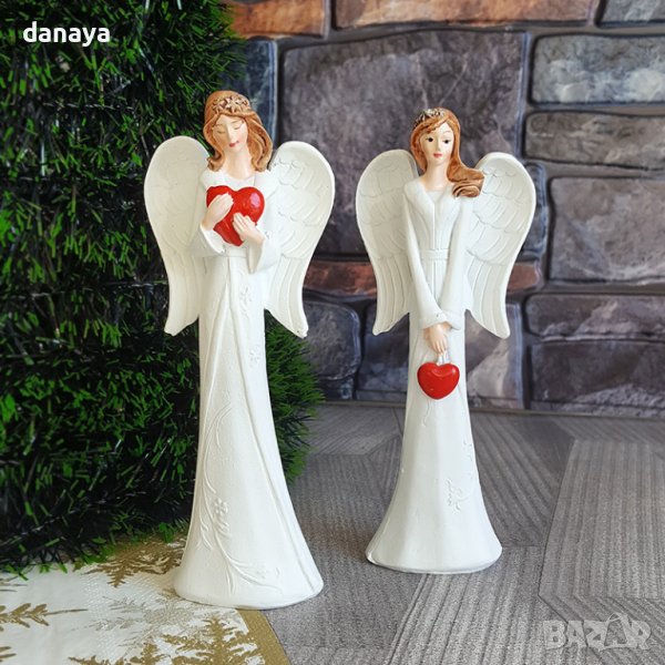 Красива статуетка, изработена от полирезин. Ангел с крила, държащ сърце в ръцете си. Чудесна декорация и допълнение към коледната украса у дома или офиса. Фигурата се предлага в картонена кутия, подходяща е за подарък за Коледа, Нова Година, рождени дни и др.