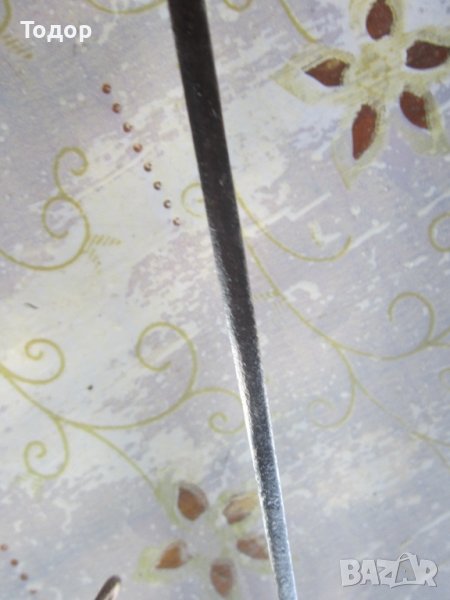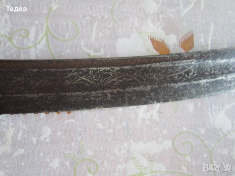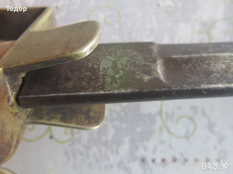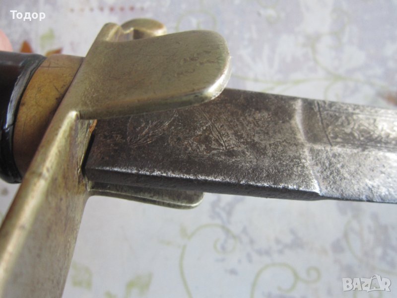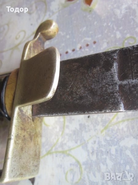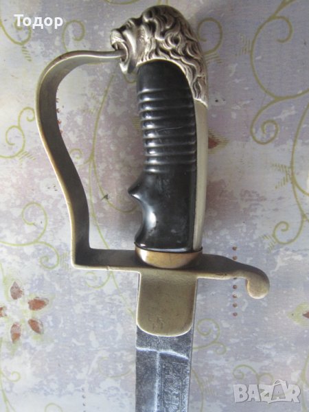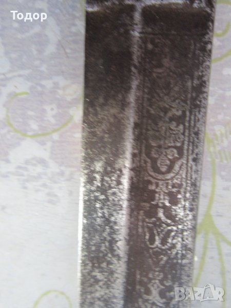 острие 93 ширина 3,3 Дебелина 6 мм Дължина по права линия 101 на острие 88 Прекрасно гъвкаво острие от въглеродна стомана Два канала От двете страни изцяло и покрита с гравюри В основата на острието от едната страна има образ на владетел с корона а от другата образ на лъв с копие и знаме Хубава патина Не заостряна и не скъсявана Без луфтове и хлабини Отлично състояние