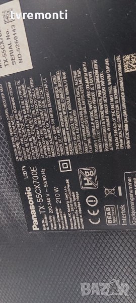 Демонтиран от телевизор Panasonic МОДЕЛ ,TX-55CX700Eсъс счупен дисплей TZLP158RFVE тесвана от нашия техник
