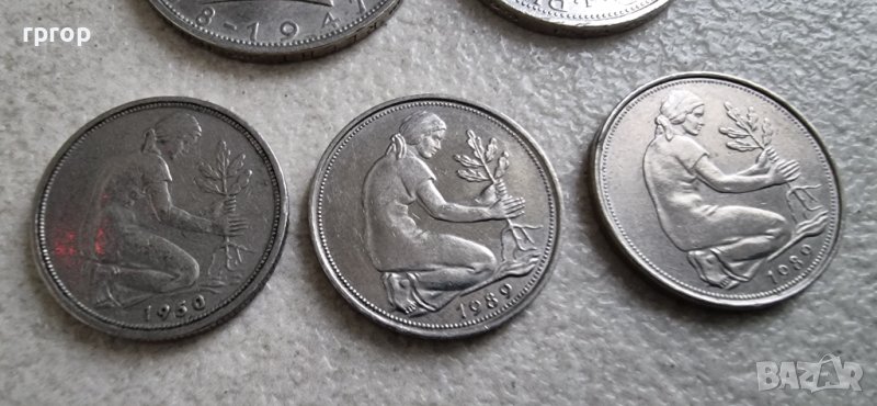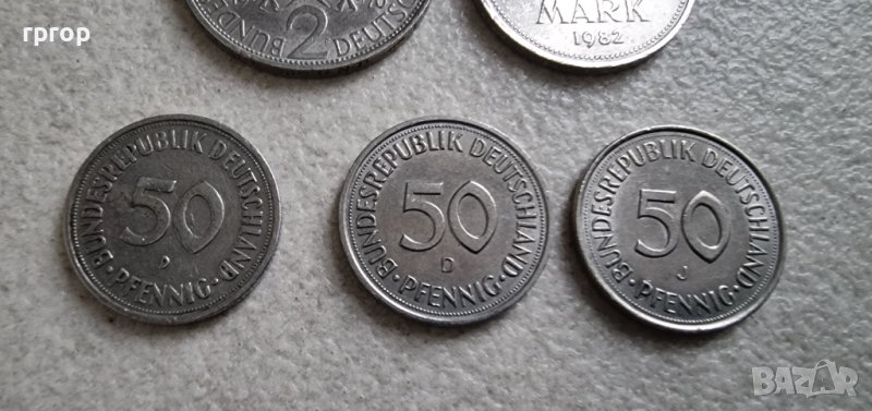 Монети . Германия. 1 , 2 дойче марки и 3 бройки по 50 пфенига. → Обява 38325471