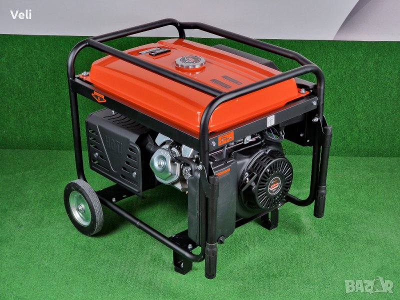 6.5 KW бензинови четиритактови генератори FULLMAX, за монофазен ток. ВГРАДЕНО АВТОМАТИЧНО ЗАРЯДНО ЗА АКУМУЛАТОРА. При нашите генератори автоматичното старт-стоп табло следи за нивото на заряд на акумулатора и при нужда го дозарежда до нужния заряд, за да може всеки път генератора да стартира безупречно. Когато генератора не е превключен на режим автоматика, паленето на генератора е с ключ, който е на управляващото табло. Генераторите са с медни ротори и статори. Бензинов Двигател VТR 800 с въздушно охлаждане, 16 конски сили. Работна честота: 50 Hz. Вграден AVR /Automatic Voltage Regullator/. Автоматичен предпазител против претоварване на генератора. Магнетен стартер и автостартер с ключ и акумулатор. Транспортна рамка с колела и дръжки за по-лесно предвижване на генератора. Генератора има вграден дигитален дисплей показващ изходящият моментен волтаж, херцовете и отработените моточасове. 3 броя изходи за 230 V и един изход за 12 V. Нивото на шума е 69-72 dB. Разход: 450 грама бензин на киловат час при пълно натоварване. Размерите му са: дължина 68 см., ширина 51 см. и височина 55 см. Тегло бруто с автоматиката 110 кг. Гаранционен и след гаранционен сервиз.