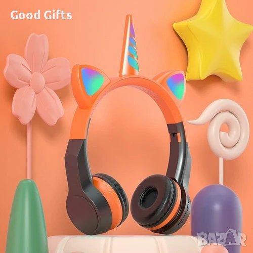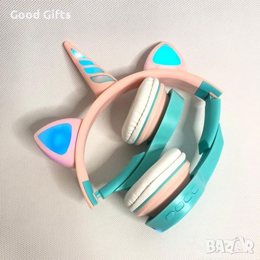 Детски светещи безжични слушалки Еднорог , Котешки уши