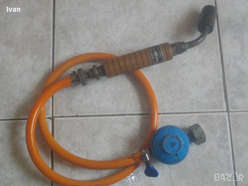 Почти нова немска горелка, работеща на газ пропан-бутан, комплект с нов маркуч италиански и почти нов оригинален италиански