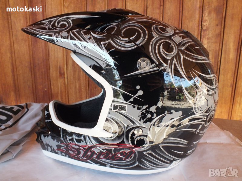 Shoei V-Moto мотокрос шлем каска за мотор, размер L или 59-60 см., перяща се вътрешност, има малка цепнатина на предния въздуховод, с калъф, цена: 139 лв.