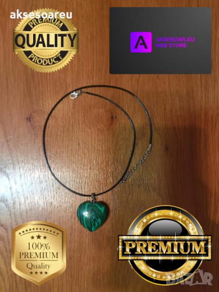 Красива модна минерална висулка с форма на сърце от зелен минерал малахит колие за мъже и жени бижута плетено въже подарък ланец ланче