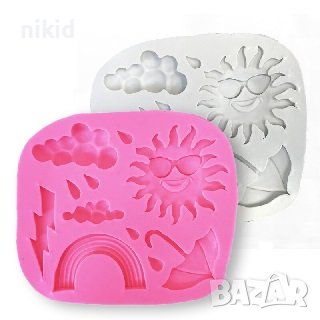 Слънце дъга чадър облак светкавица капки дъжд силиконов молд форма фондан гипс → Обява 38331609