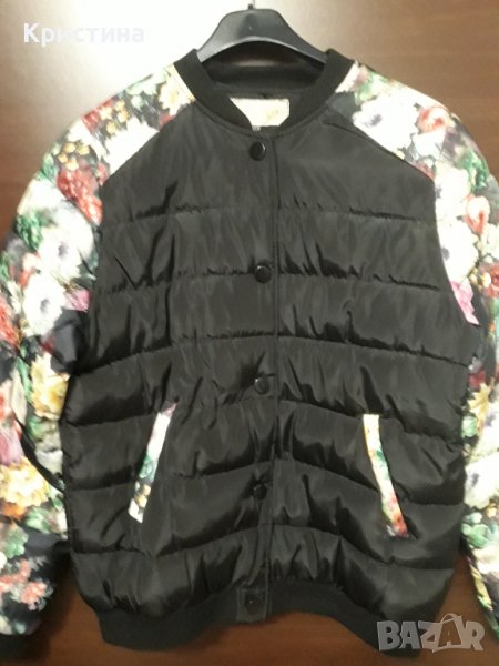 Дамско яке с ръкави на цветя. Размер XXL. Гръдна обиколка 100см. Дължина 60 см. Ново!