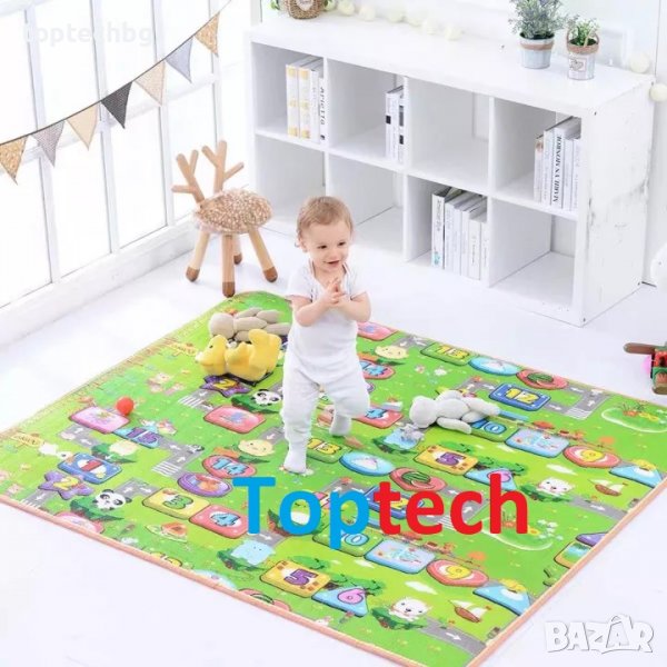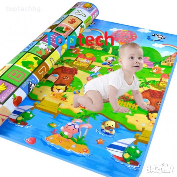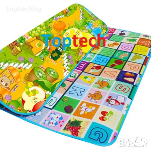 Детски килим за игра 120х180см – двулицев, топлоизолираща постелка със шарени картинки.