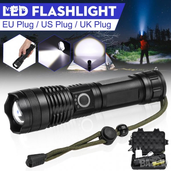 - 5 режима на работа с един бутон: силна светлина, средна светлина, слаба осветеност, стробоскоп и SOS светлина.