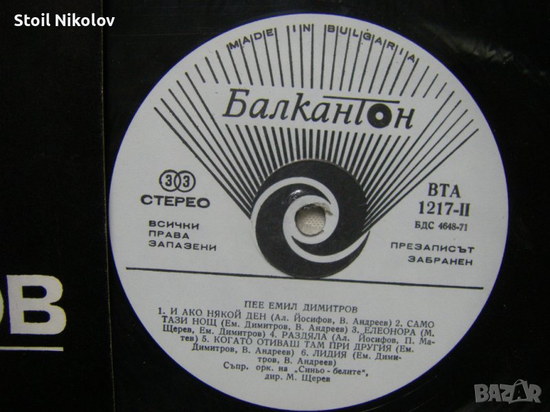 Грамофонна плоча - ВТА 1217 - Емил Димитров. Моя страна