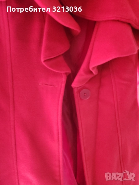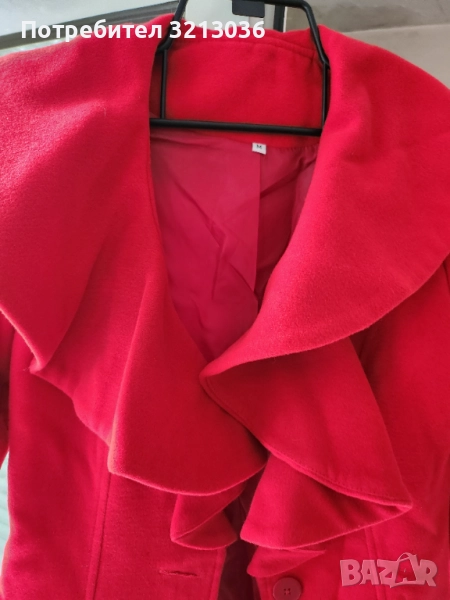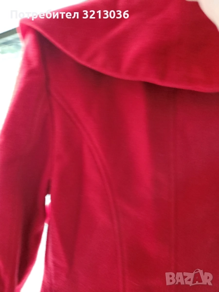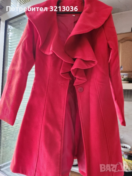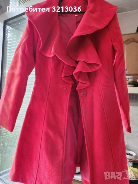 Червено палто,вталено, с едно копче,ново ,липсва етикета,размера отговаря на xs.
