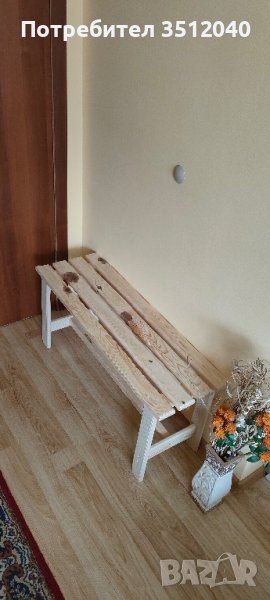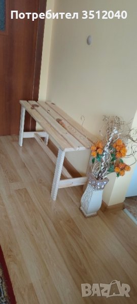 Практична малка масивна пейка за дома която е подходяща за антре хол тераса коридор и др.Пейката се продава както в естесрвен вид така и боядисана венге,орех,лазурен лак,байц,масло за дърво, безцветен лак.