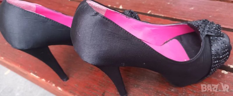 Сатенени с декорация панделка с камъчета. Обувани са няколко пъти по повод.