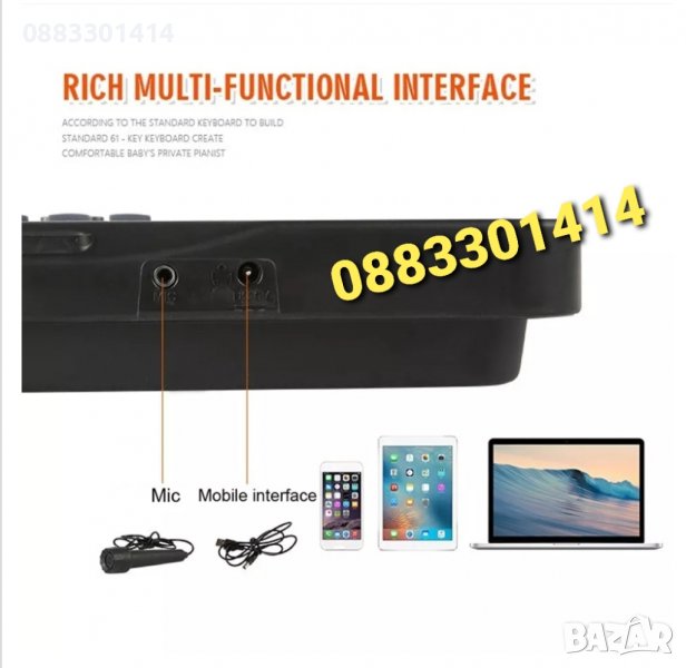 Детско пиано Синтезатор Йоника 61 клавиша с микрофон, Електрическо