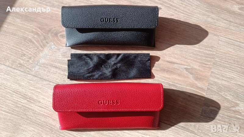 Нови калъфи за очила на марката Guess подходящи за слънчеви или диоптрични очила в два цвята черен или червен с кърпичка към тях. Цената е за брой Разгледайте и другите ми обяви.