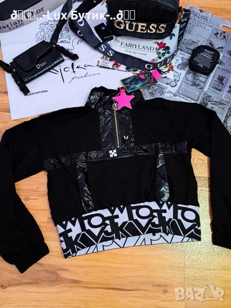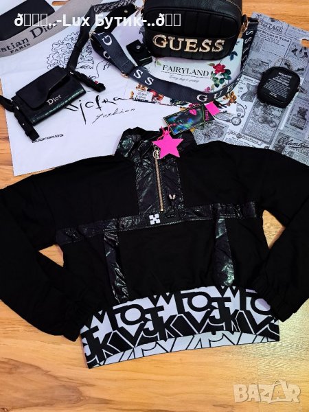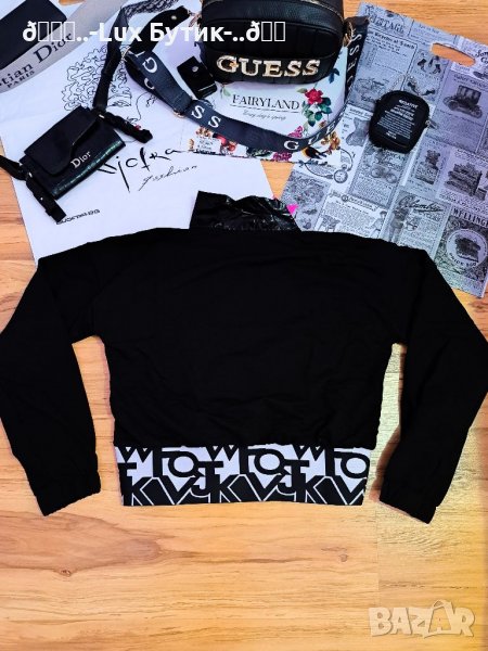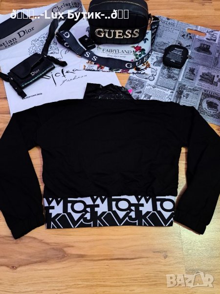 Дамска спортно елегантна черна блуза с ластик с надписи → Обява 38345046