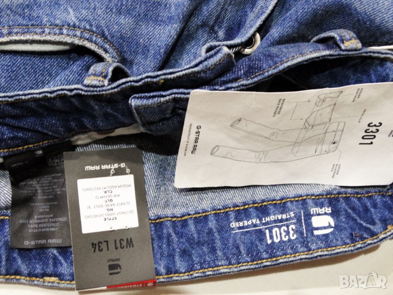 НОВИ и Намалени! G-star 3301 Straight Tapered KIR DENIM ORGANIC TAPE RESTORED Мъжки Дънки W31