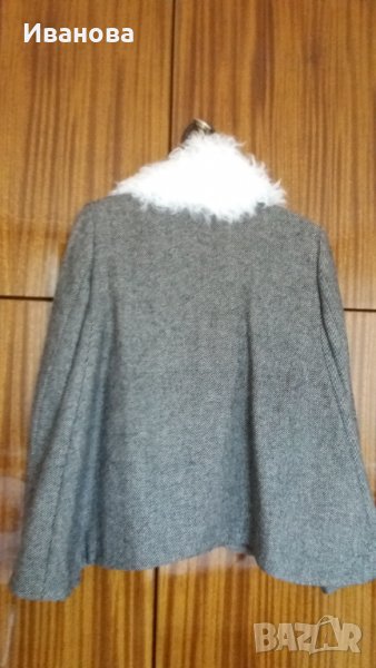 Ново яке от плат, леко разкроено, с яка от естествен косъм от коза.Закопчава се с цип и има две копчета тик-так.