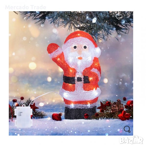 Коледна декоративна фигура Mercado Trade, Дядо Коледа, Акрил, 30 светодиода, 28 см