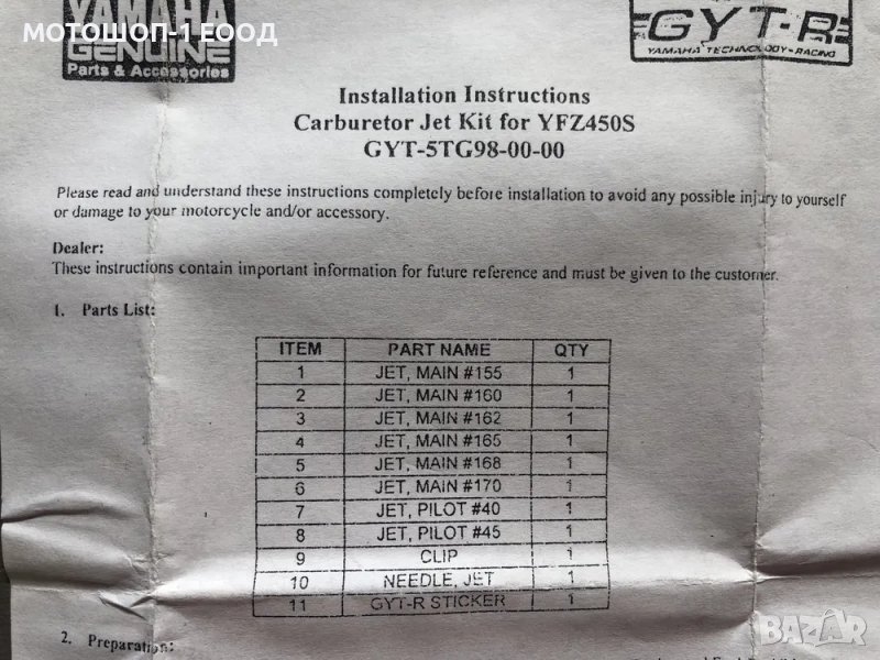 НОВ ТУНИНГ Кит за Карбуратор за Yamaha YFZ450 от GYTR, снимка 1 - Части - 38351631 НОВ ТУНИНГ Кит за Карбуратор за Yamaha YFZ450 от GYTR, снимка 2 - Части - 38351631 НОВ ТУНИНГ Кит за Карбуратор за Yamaha YFZ450 от GYTR, снимка 3 - Части - 38351631 НОВ ТУНИНГ Кит за Карбуратор за Yamaha YFZ450 от GYTR, снимка 4 - Части - 38351631 1/4