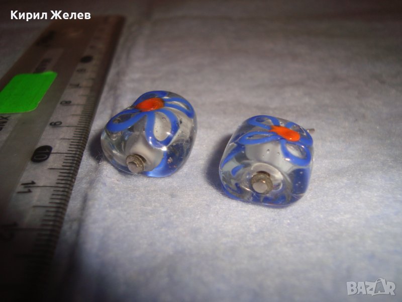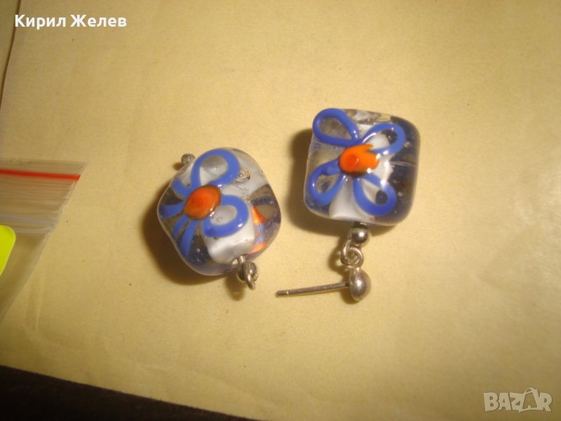 СТАРИ СРЕБЪРНИ ФЕШЪН АРТ ОБЕЦИ от ЦВЕТНО ВЕНЕЦИАНСКО СТЪКЛО МУРАНО РЪЧНА ИЗРАБОТКА 32652