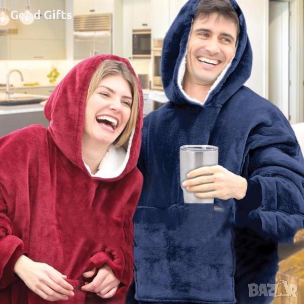 Супер меко и плюшено одеяло дреха с ръкави и качулка