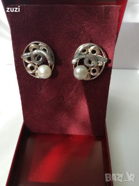 Сребърни обеци с Бяла перла-Сребро проба 925. → Обява 38354417