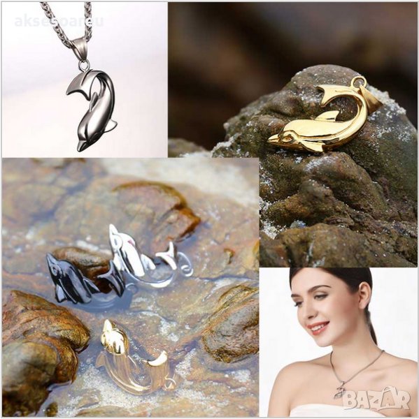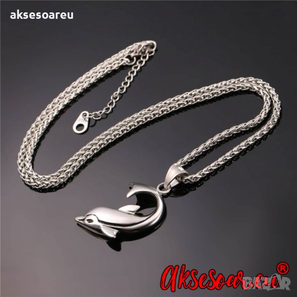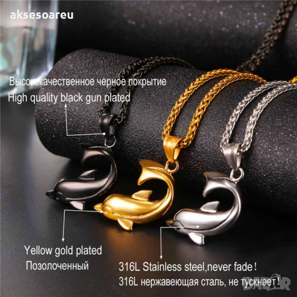 Дамско мъжко колие с висулка делфин цвят злато/сребро ланец от неръждаема стомана медальон огърлица