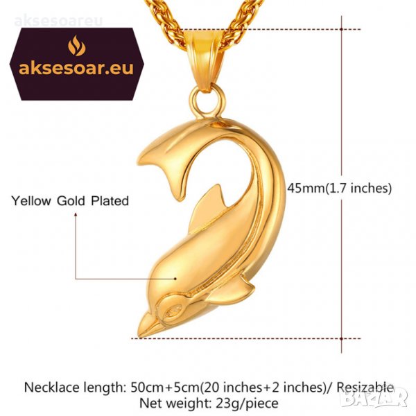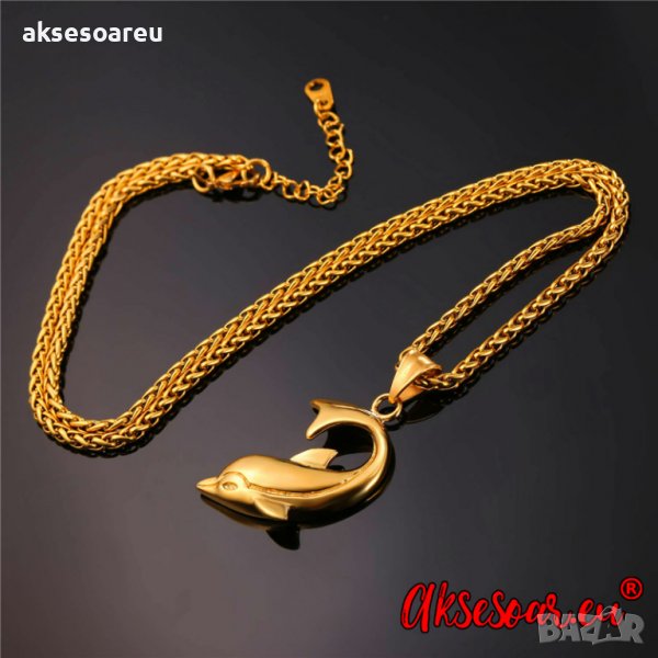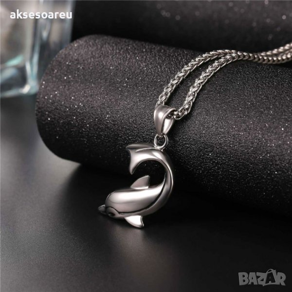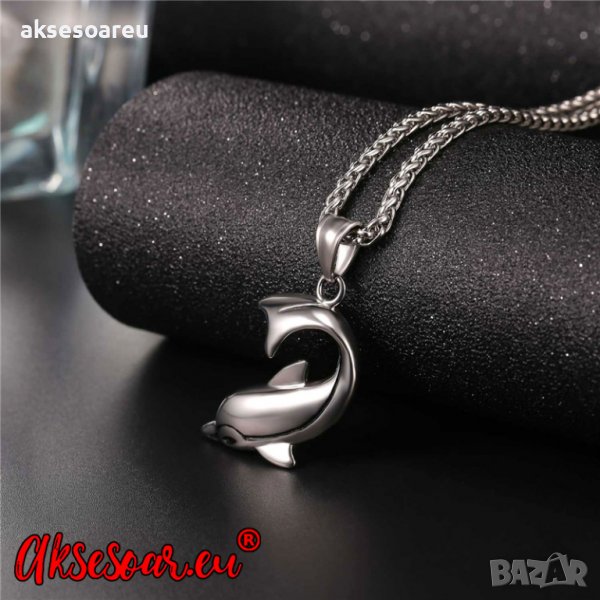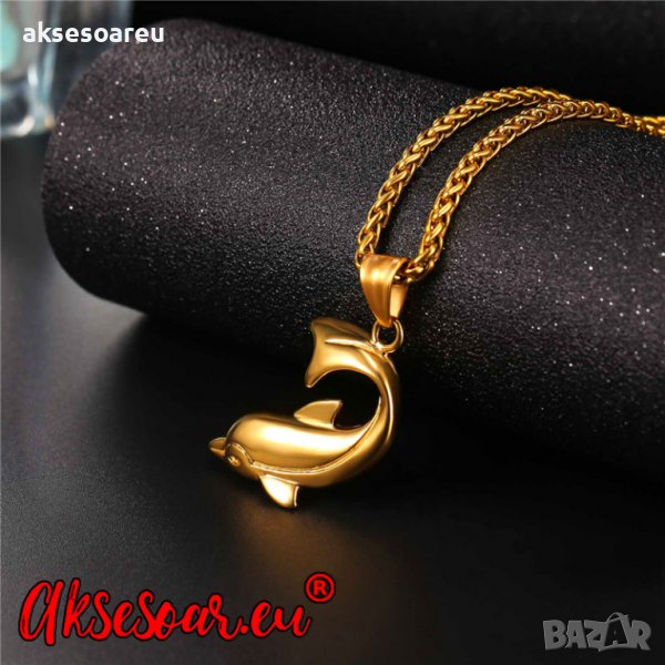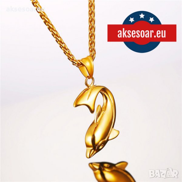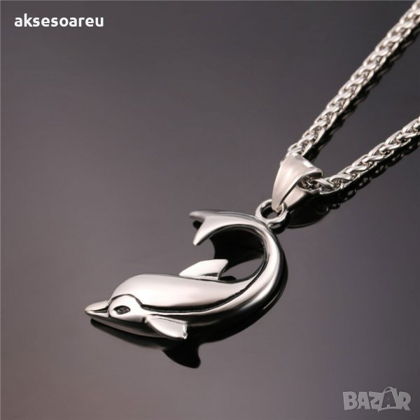 Дамско мъжко колие с висулка делфин цвят злато/сребро ланец