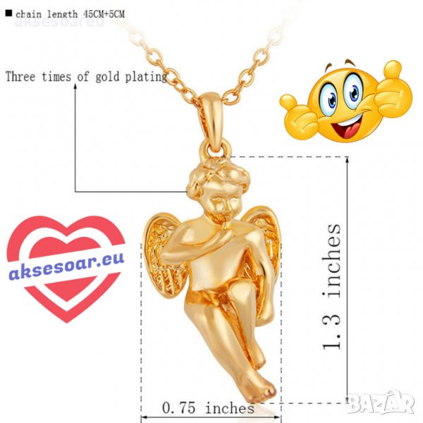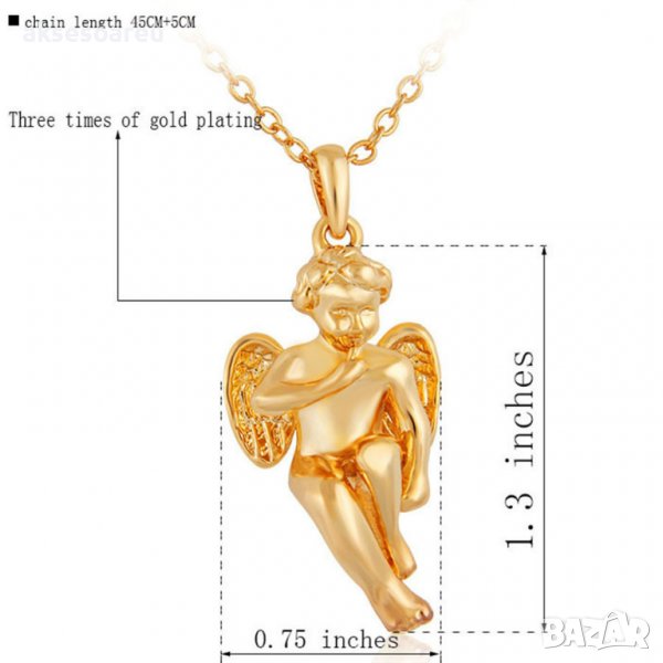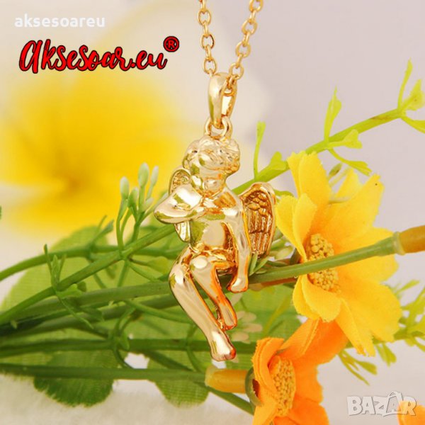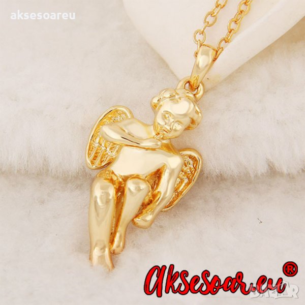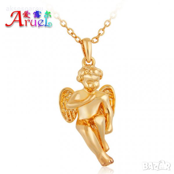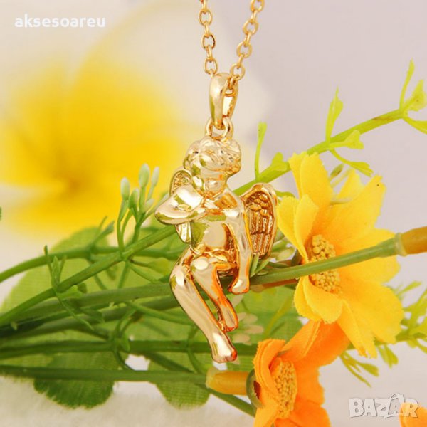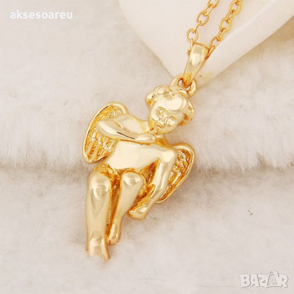 Колие ангел с крила, бижута Купидон любовник херувим златисто синджирче