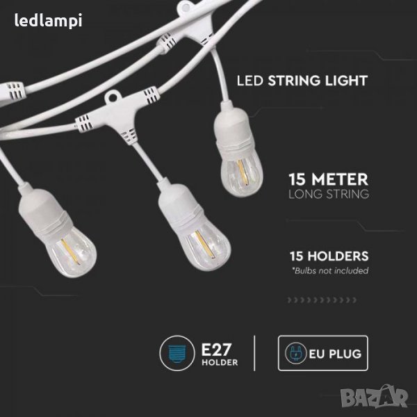 Кабел С Поредица От Фасунги Е27 15броя IP65