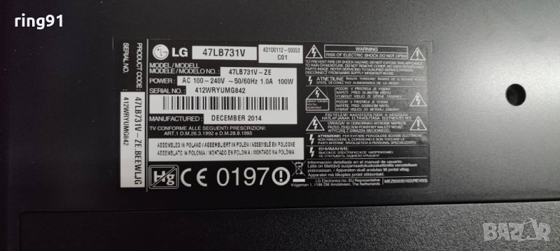 Телевизор LG 47LB731V На части , снимка 1 - Части и Платки - 38360359 Телевизор LG 47LB731V На части , снимка 2 - Части и Платки - 38360359 Телевизор LG 47LB731V На части , снимка 3 - Части и Платки - 38360359 1/3