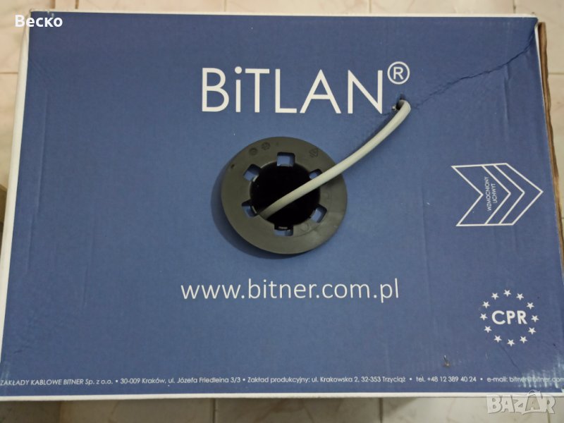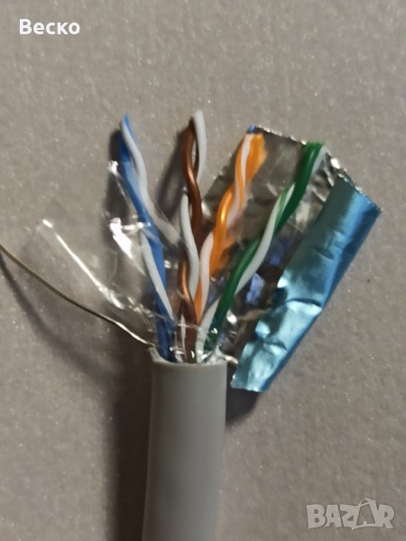 Високо качествен меден кабел, светло сив на цвят (с UV защита) за външно и вътрешно полагане, студо и мразоустойчив, 4 медни усукани двойки проводници, алуминиева екранировка, метриран, издържа тест над 150м. Кабела е произведен в Полша и сертифициран за продажба в EU