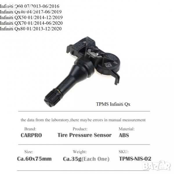 ТПМС сензори за налягане на гумите Инфинити TPMS Infiniti Qx
