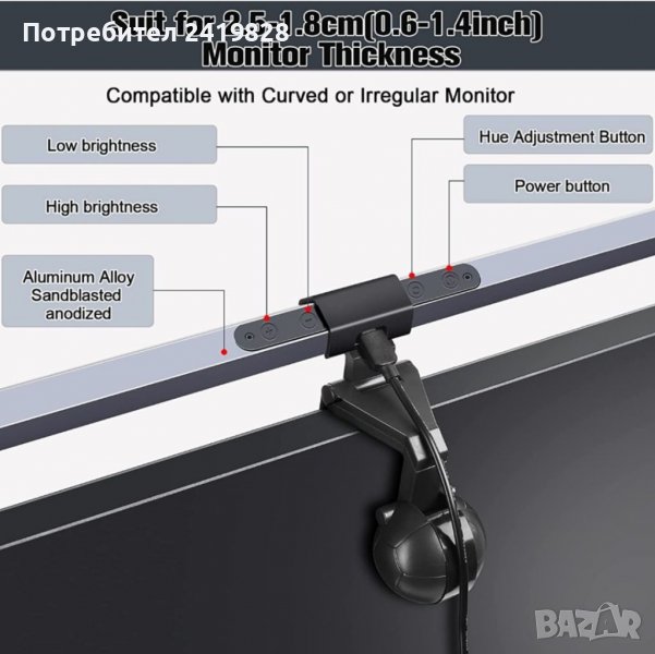 Лампа за компютърен монитор Anpro PC, LED светлина → Обява 38363358