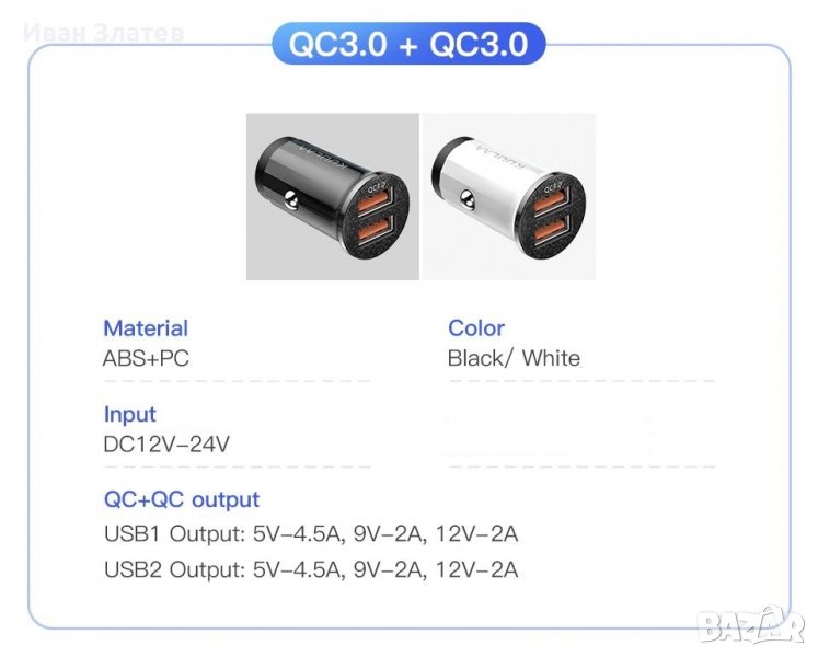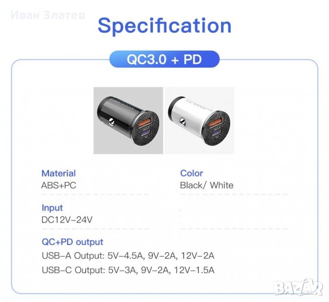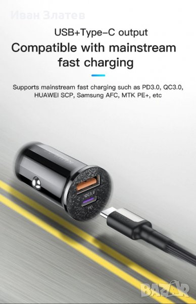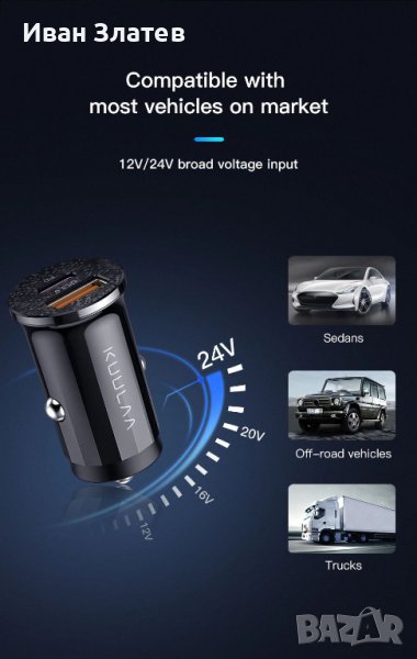 12V - 24V QC3.0 PD 48W зарядно за кола за телефон → Обява 38363948