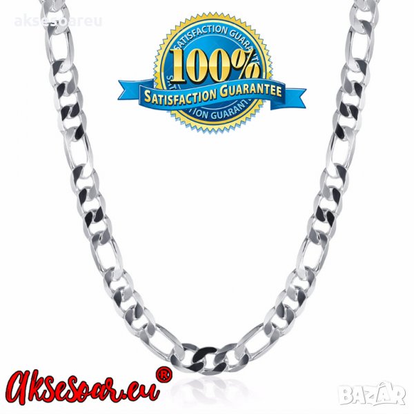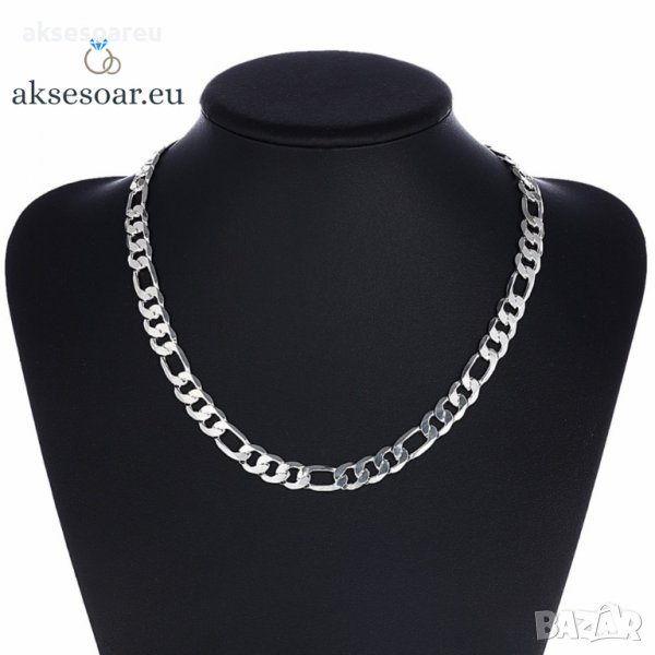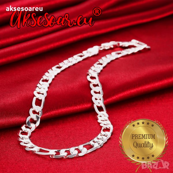Комплект посребрен сребърен ланец 8 мм и гривна плетка картие бижу верига мода синджир бижутерия Бла