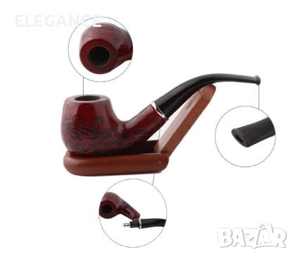 Лула гравирана с дърворезба.Solid Wood Resin Tobacco Pipe Red Black Pattern Carving Smoke Pipe → Обява 38368771