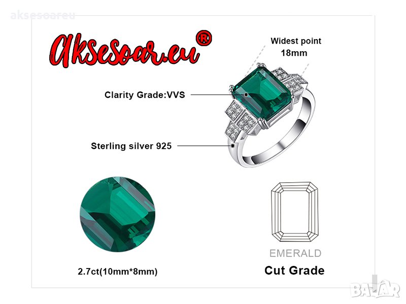 посребрен за жени годежен изумруден за момичета скъпоценни камъни Бижута